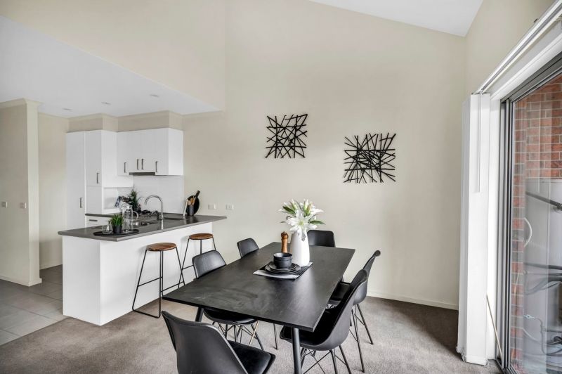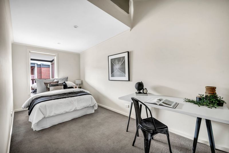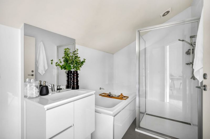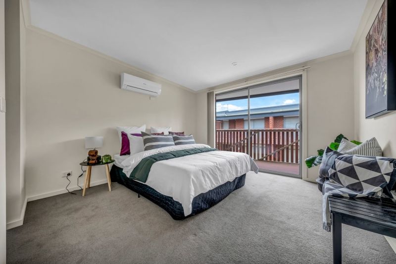 Upstairs, the master bedroom includes a walk-in robe, balcony, and split-system air conditioner. The second bedroom also offers a walk-in robe and split-system, and is serviced by a sleek central bathroom. With split systems in both bedrooms and the living area, you'll enjoy climate control throughout the seasons.