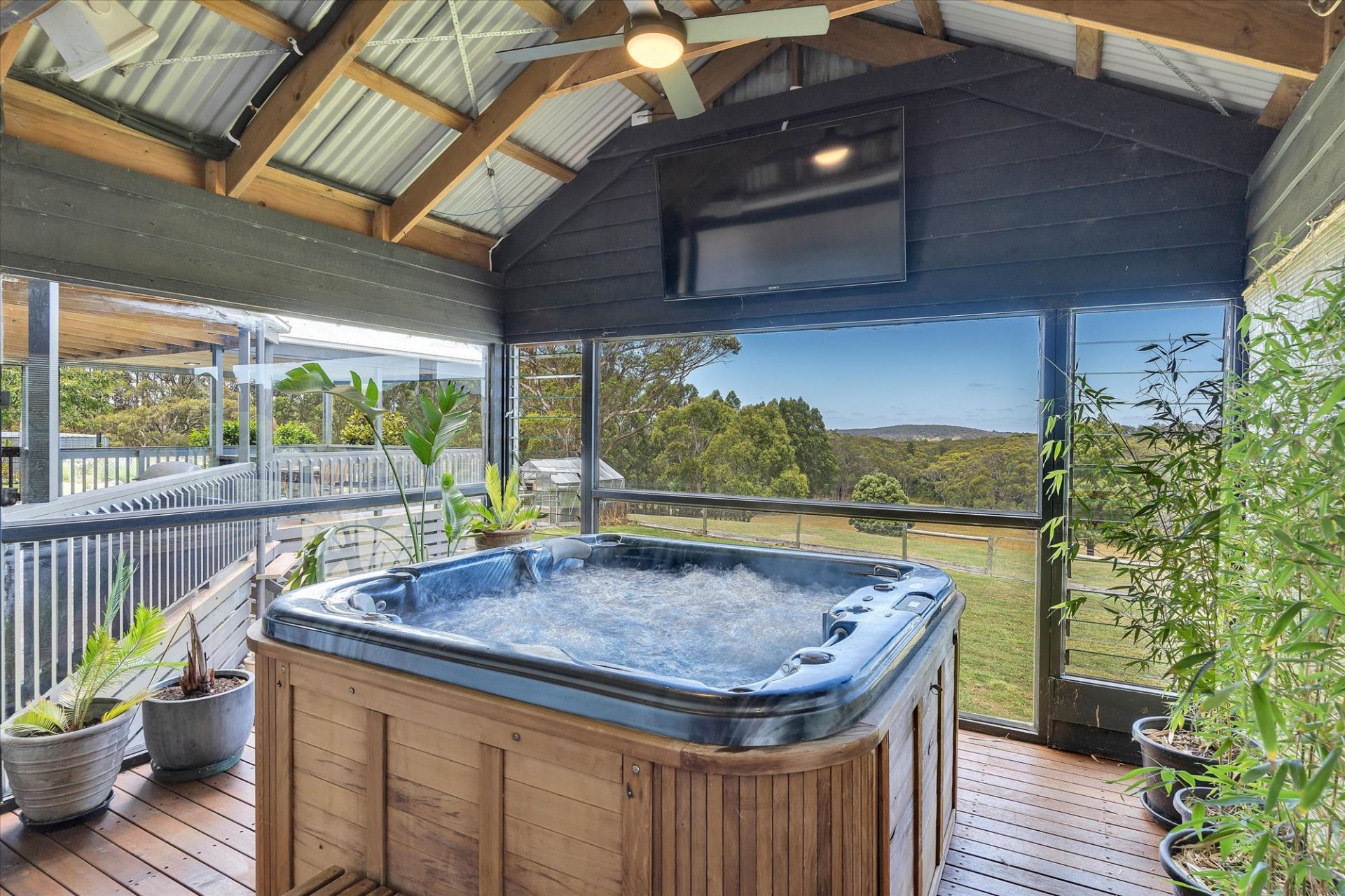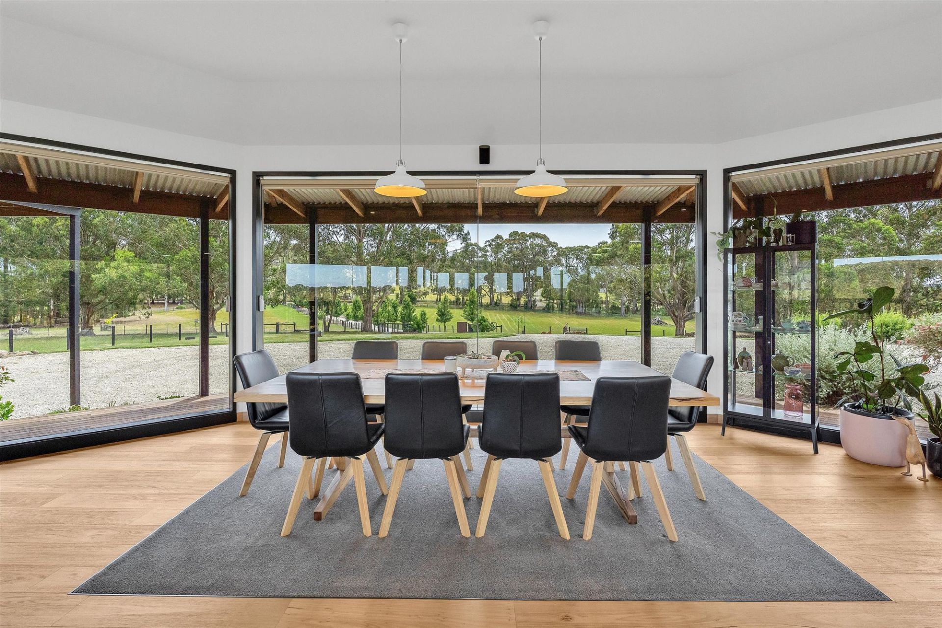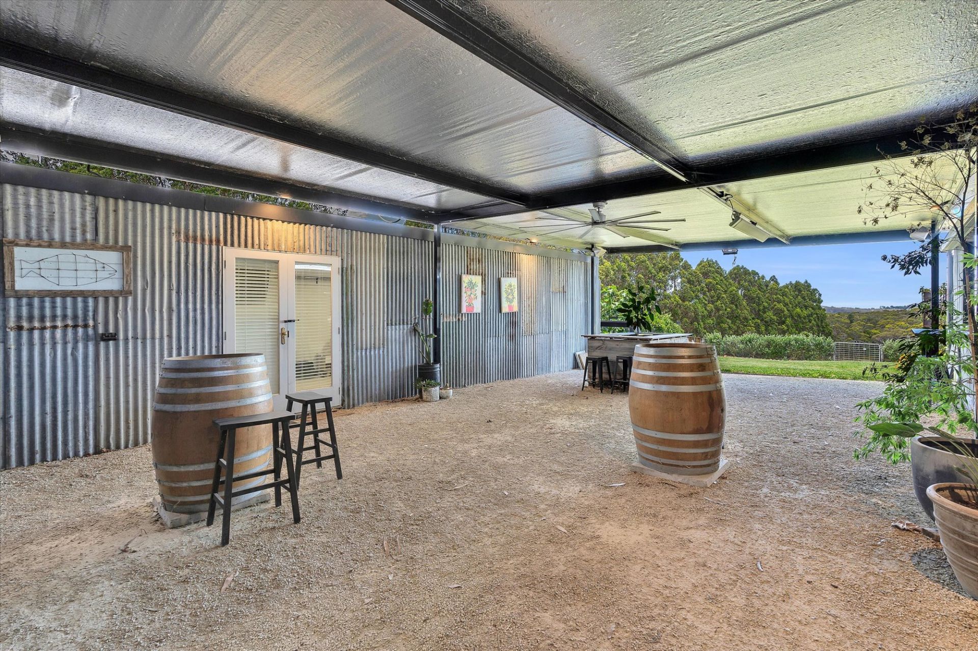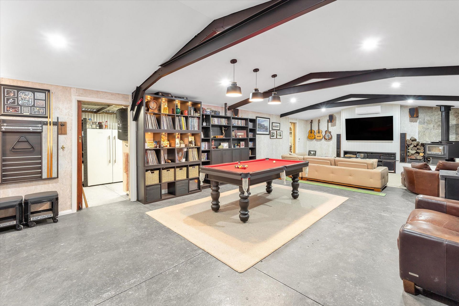 The home takes full advantage of its northerly aspect & features sustainable living with 26.4kW solar system, 25.5kW batteries, double glazing & 100,000-litre water tank with UV filtration. Designed for the discerning homeowner, the spacious floor plan includes an architectural living area at the heart of the home, surrounded by extensive shedding, ideal for a collector, tradesperson, or those needing secure storage for caravans, boats & more.