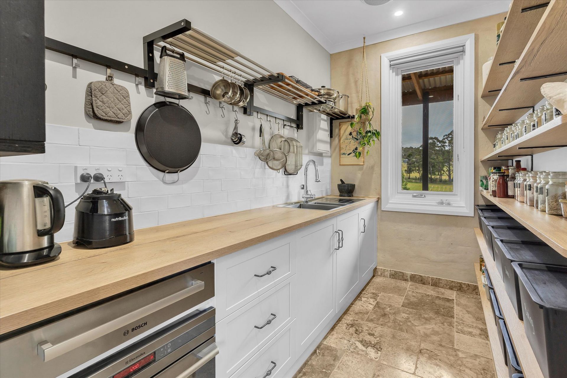 Accessed through bespoke motorized gates & tree-lined driveway, the home opens to an expansive living space. Open-plan kitchen, living, and dining areas feature floor-to-ceiling glass, bringing stunning views indoors. The kitchen is a chef's dream, with a Bosch induction cooktop, 900mm Pyrolytic oven, & Bosch dishwasher, complemented by an adjoining butler's pantry with dbl sink, warming drawers & Electrolux steam oven.
