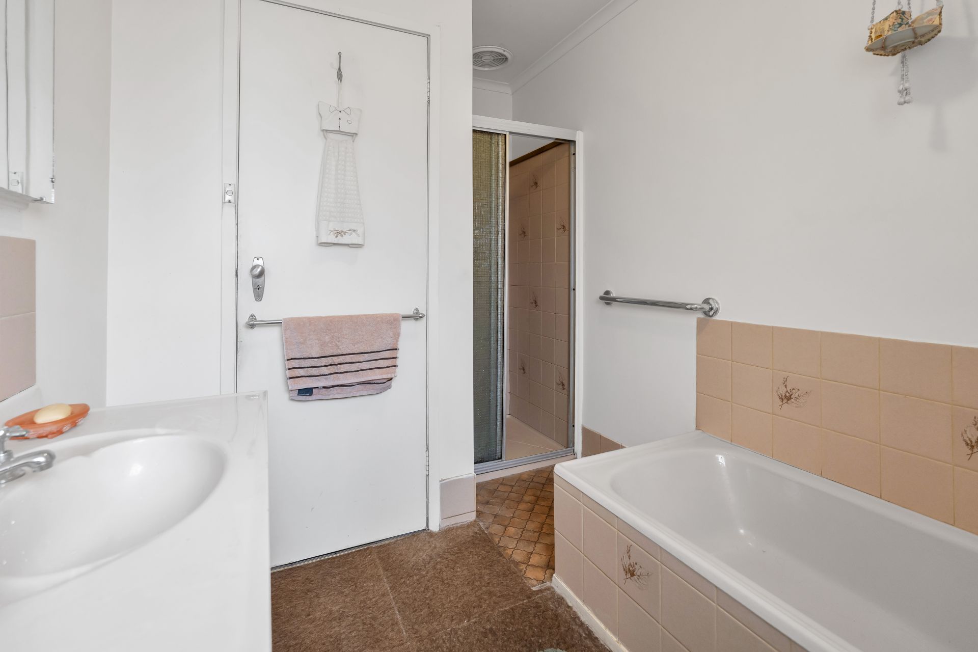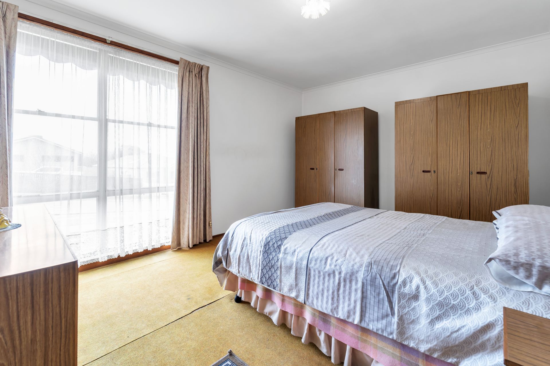 Accommodation includes three generously sized bedrooms, each offering flexibility for families, guests, or even a home office. These are serviced by a central bathroom in well-kept original condition, with the convenience of a separate toilet.