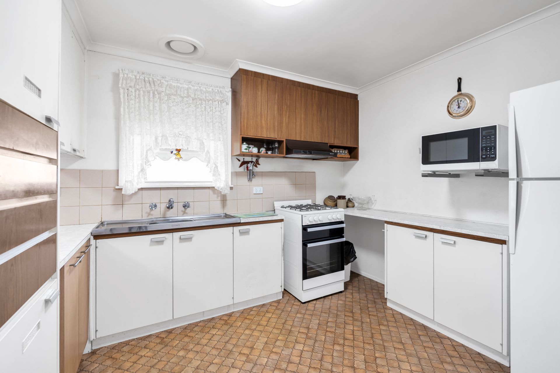 The kitchen, the heart of the home, is equipped with an updated Chef gas oven and hotplates, offering reliable functionality for everyday cooking and entertaining. Its practical layout provides plenty of scope to modernise further in the future, while still being ready to enjoy right away.