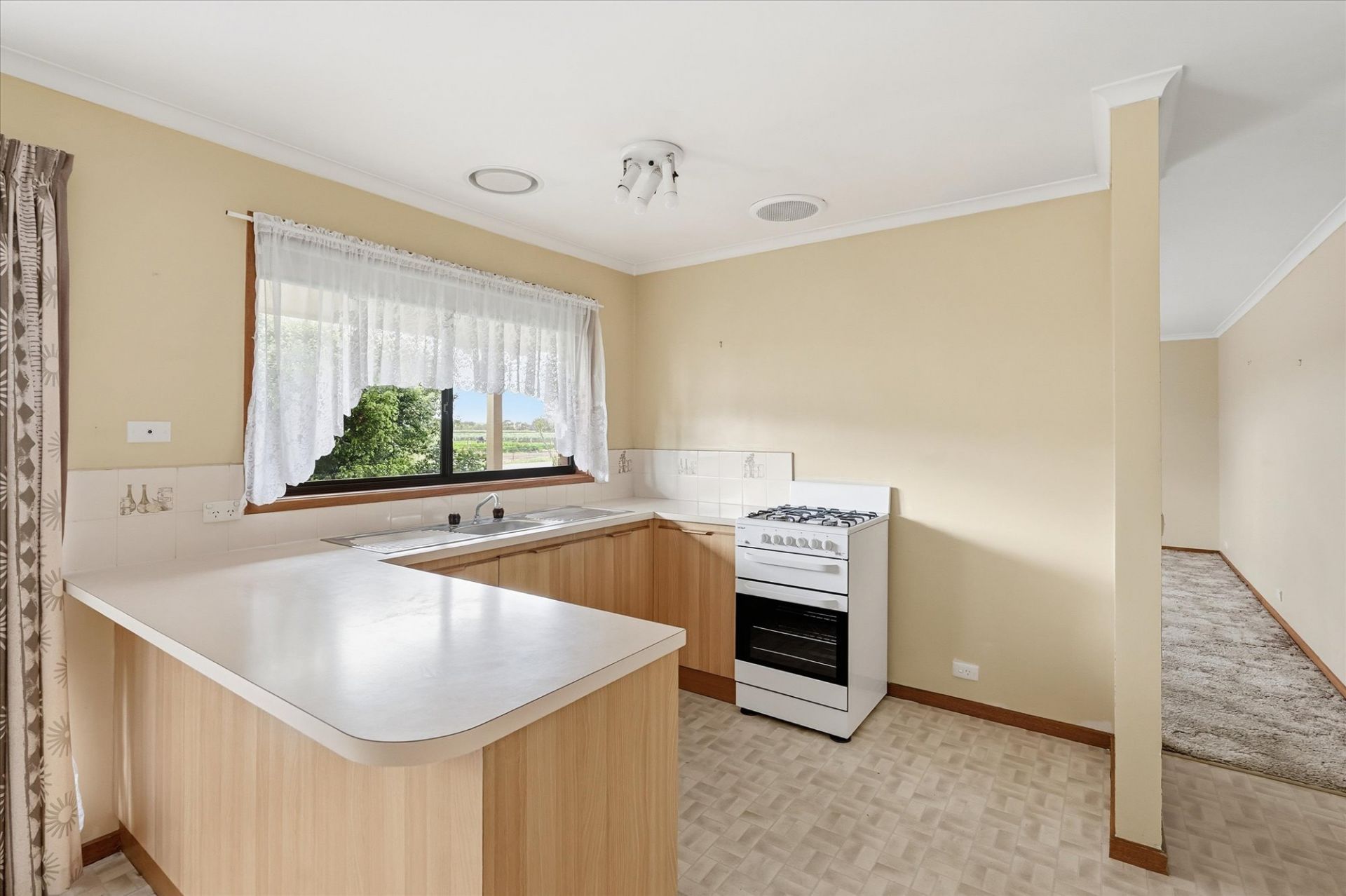 • Well-appointed kitchen/meals area with upright stove and ample storage