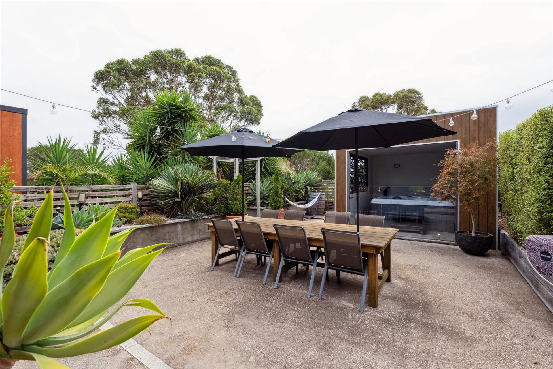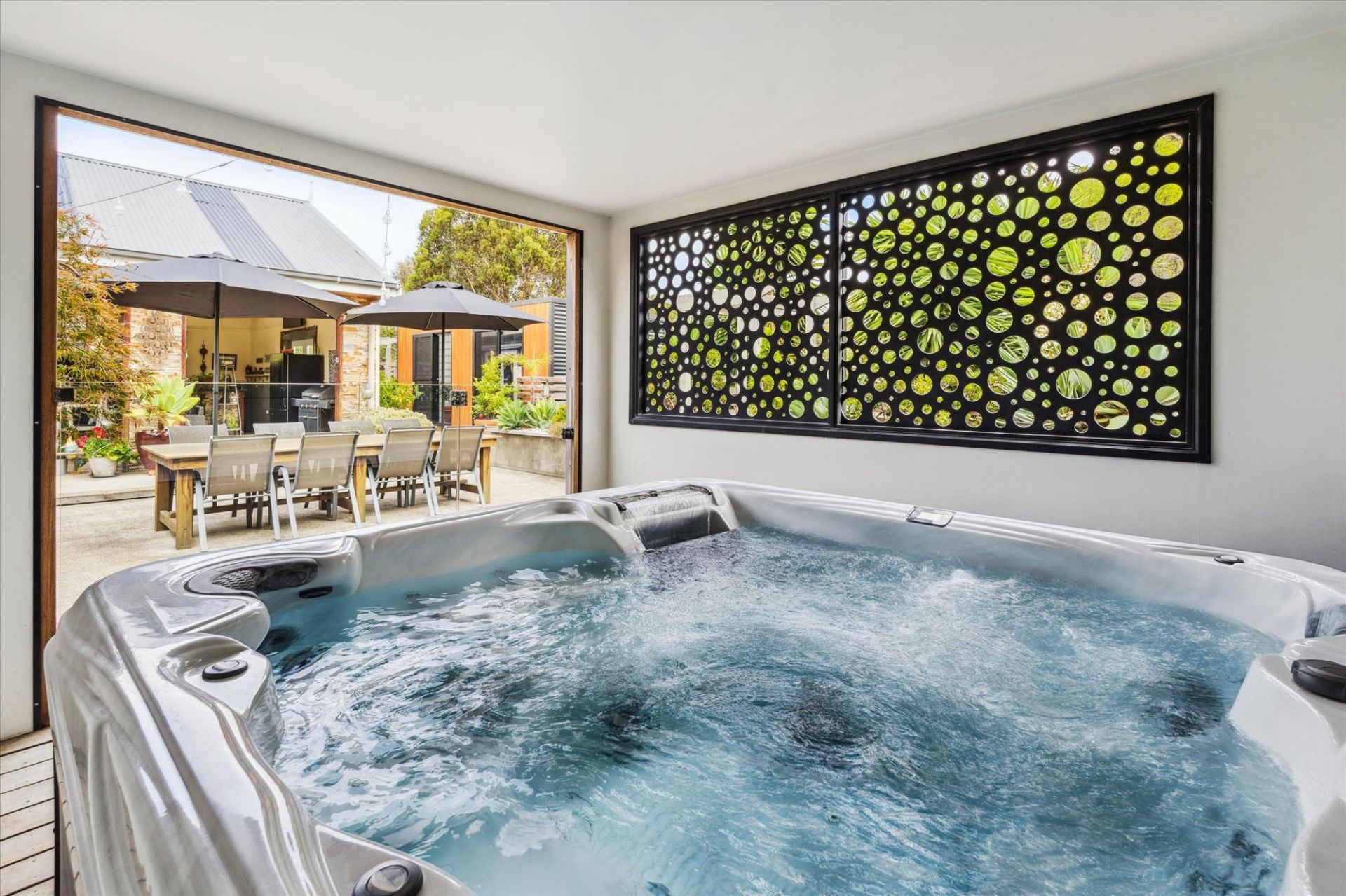 If you continue outside you will enjoy the private outdoor entertaining area that overlooks the enclose spa room.