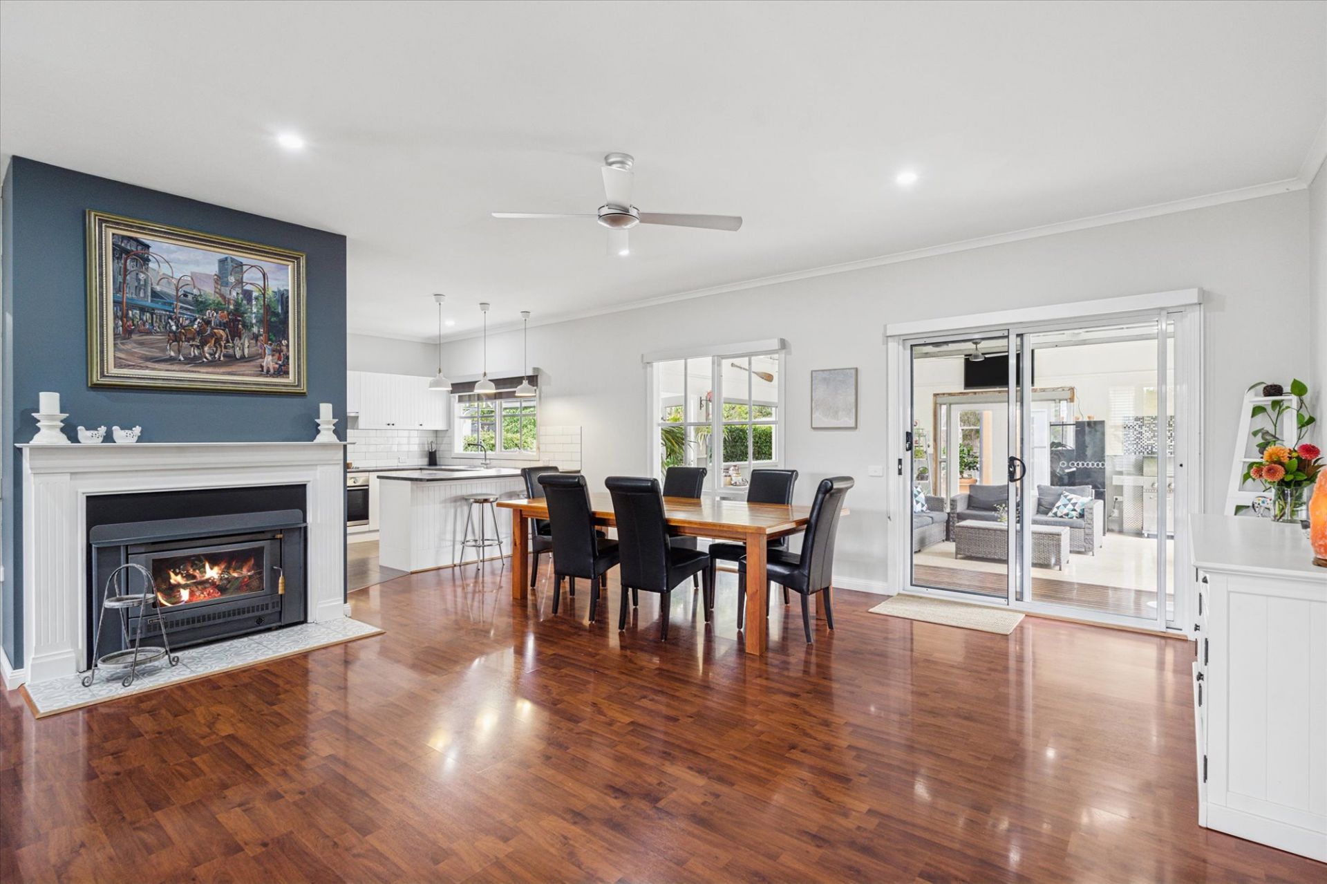 Through the feature front door you are greeted by the open plan lounge, kitchen meals area that flows out onto the large enclosed, undercover outdoor entertaining area.